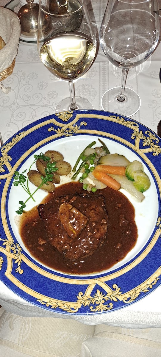 Fabulous lunch for Mother's day at a very reasonable menu price of 39€ considering all we got to eat and the super quality. Very tasty entrées with choice of foie gras, aubergine salad, tartar of St Jacques followed by succulent duck, tornados and fish in sauce cooked to a tee. The Grand Mariner soufflé was to die for. Lots of extras before, during and after to round off a great meal. Excellent service and lovely atmosphere in auberge.